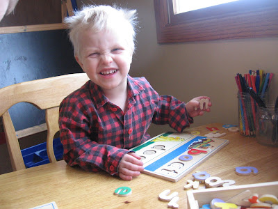 Our first official "homeschool" week! We talked about the alphabet. I bought a new set of foam bathtub letters to look at but scrounged the rest of the materials from around the house- alphabet puzzles, cardboard cutout letters, etc. I also rounded up all the alphabet books we have and put them into a basket to read throughout the week.